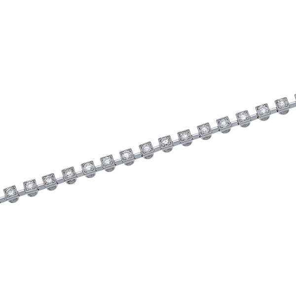 This gorgeous bracelet is fully set with round brilliant cut diamonds, each embraced in a modern square setting, and separated by a straight 18ct white gold bar.