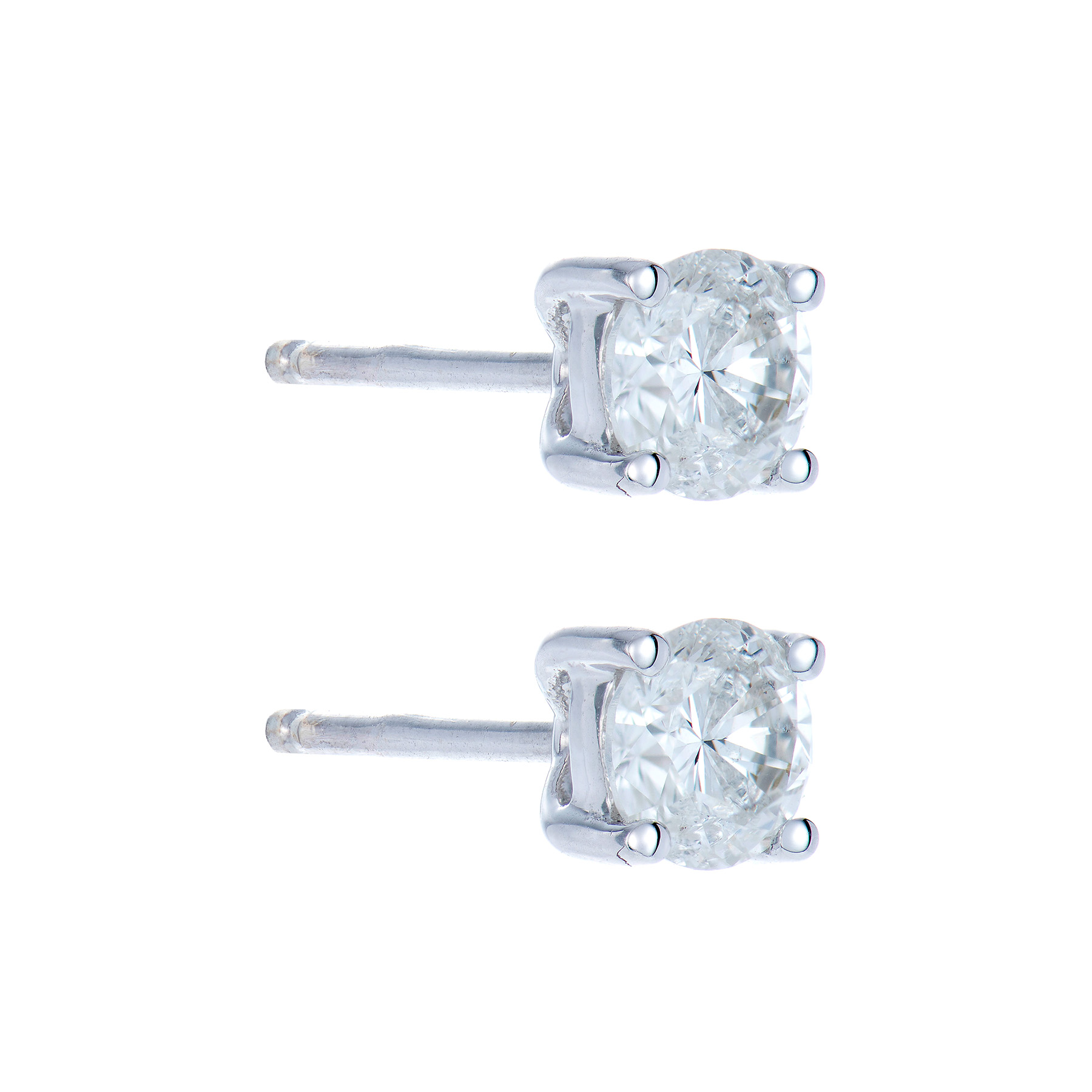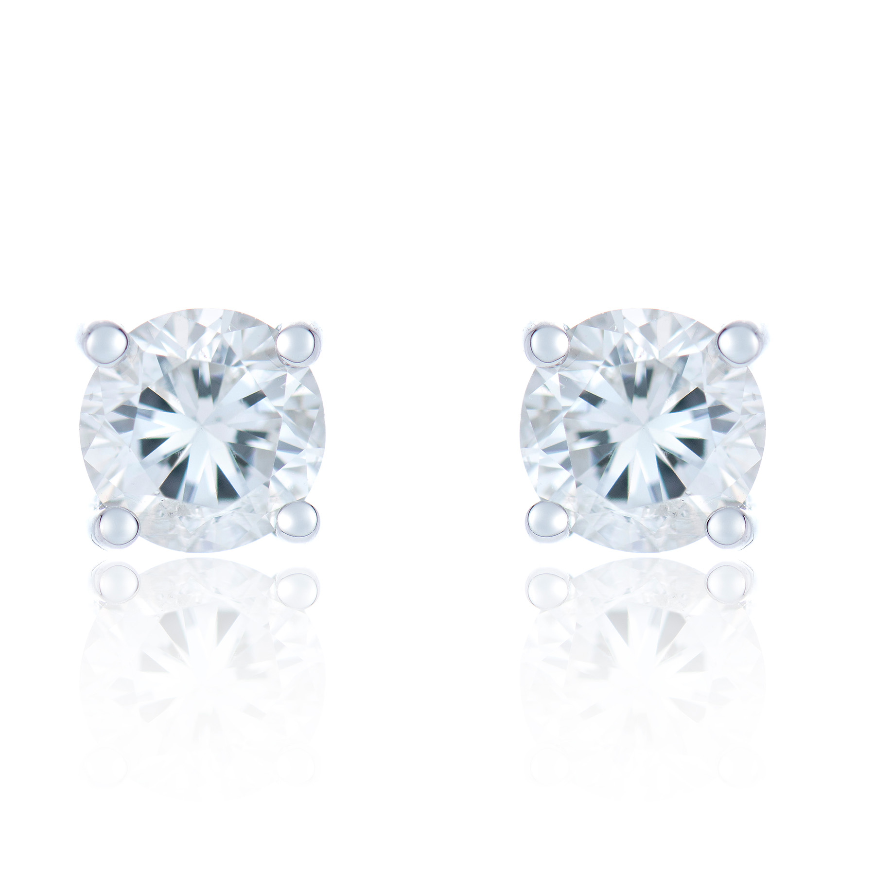 These earrings are each set with one captivating round brilliant cut natural diamond shimmering in an elegant 18ct white gold four claw setting. An exquisite and timeless classic which can be worn on any occasion or perfectly complements any other piece.