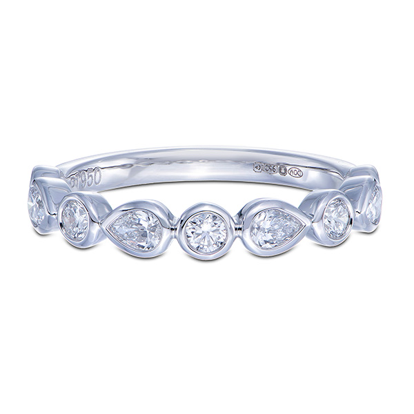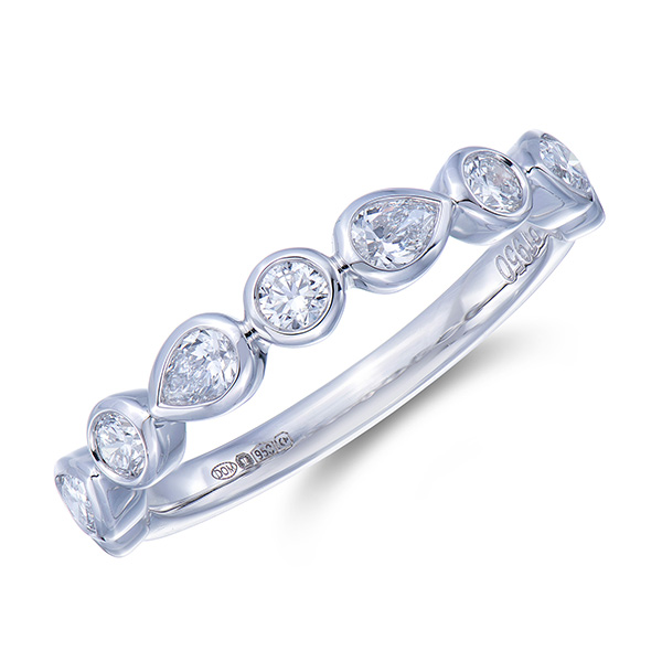 This dazzlingly elegant eternity style ring is set with twelve beautifully matched princess cut diamonds all embraced, side by side, in a secure channel style setting. Perfect as an eternity ring or diamond set wedding band.