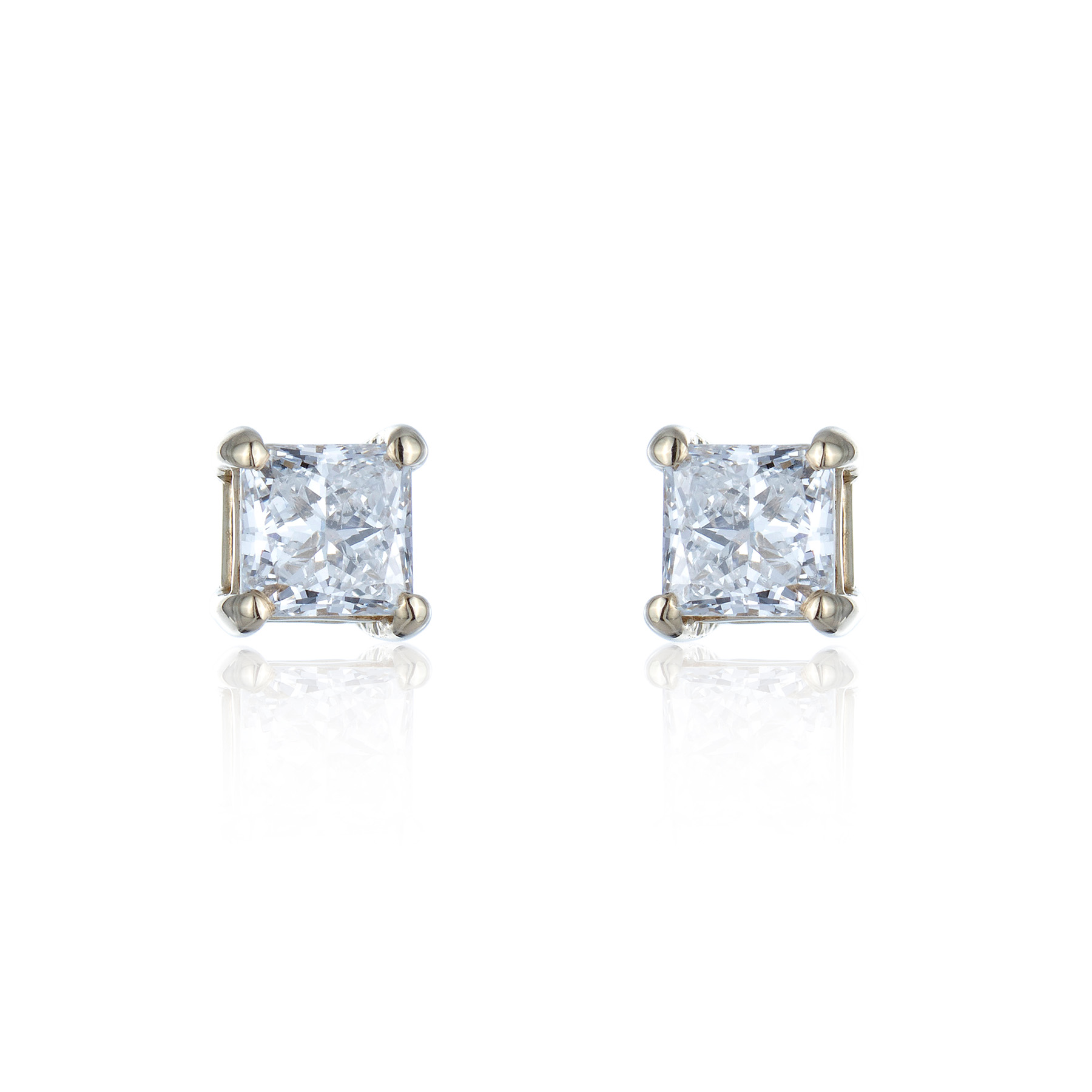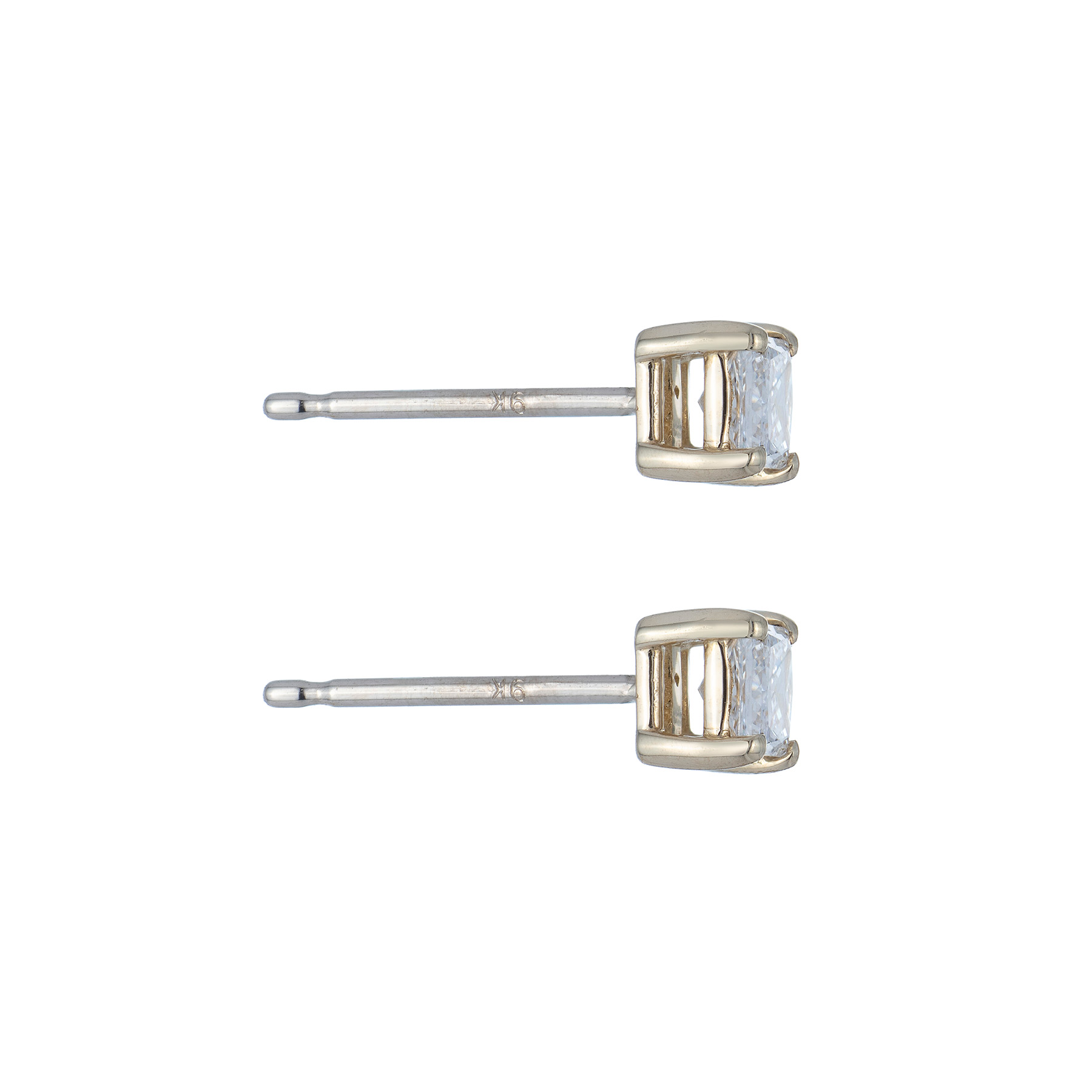 An enchanting set of earrings each set with one 0.27ct sparkling princess cut lab grown diamond held perfectly in a four claw yellow gold setting. A timeless way to add a touch of sparkle to your everyday.
